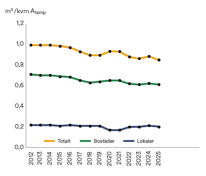 Vattenanvändning i kubik fördelat per Atemp